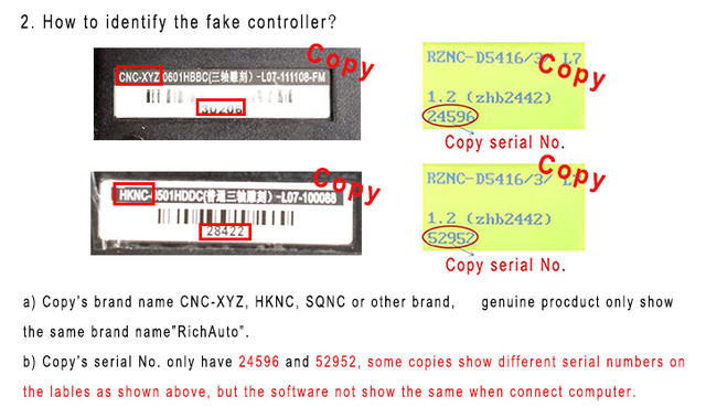 Розберемо докладніше:- Маркування неоригінальних контролерів має вигляд CNC-XYZ, HKNC, SQNC і т. д. Маркування всіх оригінальних контролерів RichAuto починаються виключно з напису «RichAuto».
