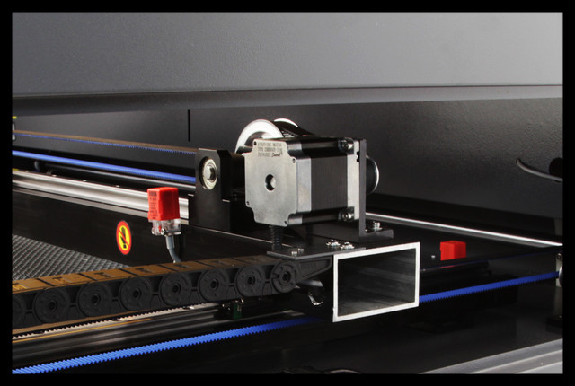 LM9060 90W - це високотехнологічний пристрій закритого типу для гравіювання і різання різних матеріалів, головним компонентом якого є потужний СО2 лазер. В якості робочого середовища такого випромінювача використовується суміш газів (вуглекислий газ, азот, гелій). Лазер СО2 дозволяє обробляти крихкі матеріали, так як тепловий вплив на матеріал локалізовано,що не призводить до порушення цілісності та зовнішнього вигляду заготовки (матеріал не піддається механічному впливу). LM9060 оснащений стільниковим і ламельними робочими панелями 900х600мм. Завдяки підйомному механізму верстата можна обробляти заготовки різної товщини. Переміщення лазерної головки здійснюється по рейковим лінійним напрямним типорозміру HG15. Плавність і точність руху забезпечують крокові двигуни від Leadshine Technology моделі 57CM21X-M-L200, а також ремінний привід на основі зубчастих ременів і коліс HTD 3M. Для визначення крайніх положень об'єкта використовуються індуктивні датчики FOTEK PL-05N (NPN). Так як лазерна трубка має водяний тип охолодження, для циркуляції рідини використовується помпа моделі XYH-075. Повітряний потік забезпечує компресор моделі ACO-004. За вентиляцію корпусу відповідає вентилятор моделі CZR-LY80. Система управління верстатом побудована на базі контролера RuiDa RDC6445G (EC) і драйверів Leadshine Technology М542С. Всі компоненти лазерного верстата LM9060 вмонтовані в чорно-помаранчевий металевий корпус.