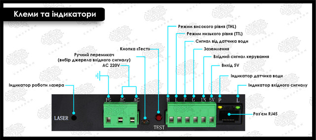 Вихідна потужність лазера може регулюватися аналоговим сигналом 0-5 або сигналом від керуючої плати