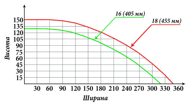 | Максимальна висота підйому кола над рівнем столу | 16-дюймів - 150 мм, 18-дюймів - 160 мм |