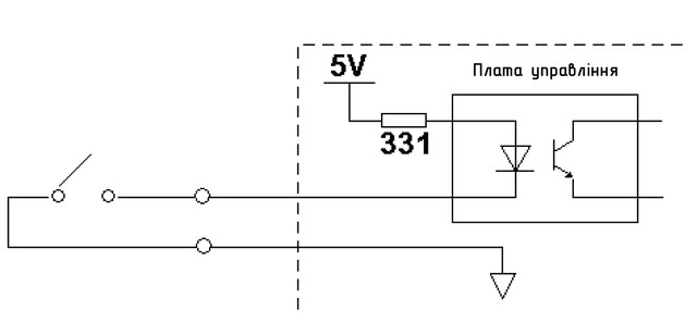 Схема підключення вхідних сигналів XORG0, GIN15, ReMark (необхідний зовнішній нормально розімкнений перемикач з контактним опором менше 100 Ом)