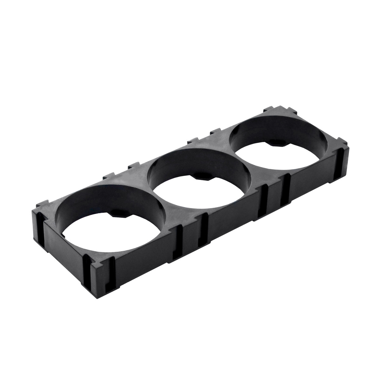 Холдер забезпечує рівномірне розташування акумуляторів, що сприяє правильному охолодженню та знижує ризик пошкоджень. Він не деформується при нагріванні елементів, стійкий до механічних навантажень і вібрацій. Для надійної фіксації акумуляторів використовуються верхня та нижня частини холдера, які формують повноцінну касету.